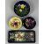 MOORCROFT BUTTERCUP PATTERN CIRCULAR FOOTED BOWL, 12cms (diam.); rectangular trinket dish, 20 x 8.5cms; and two circular footed shallow bowls, Hibiscus pattern and one other, both 9.5cms (diam.)