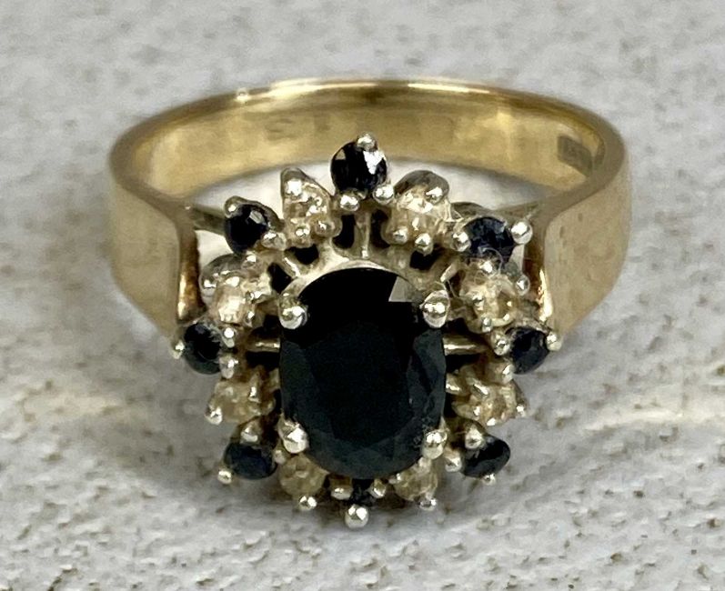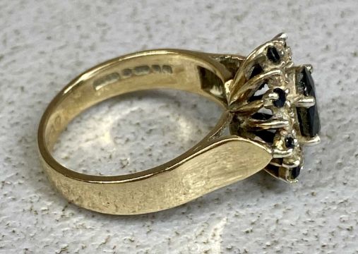 SAPPHIRE & DIAMOND CHIP CLUSTER RING, size N, 5g
