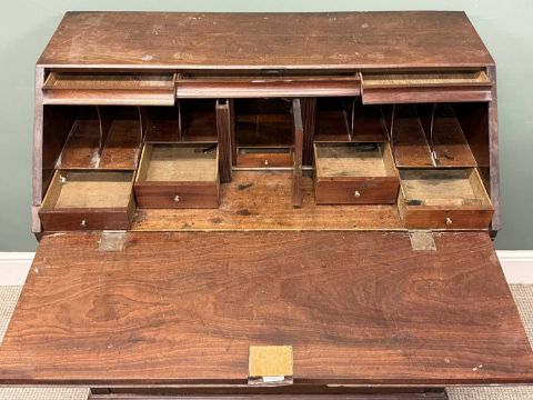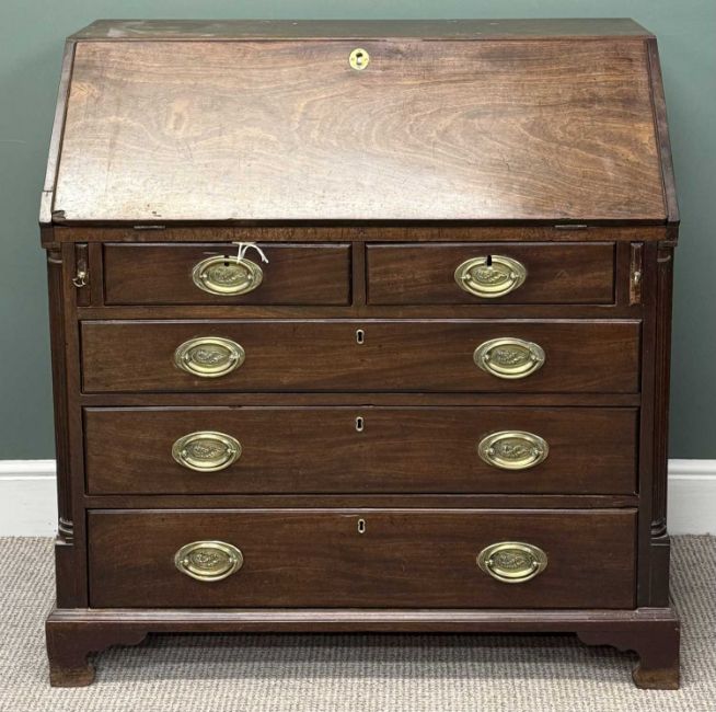 GEORGIAN MAHOGANY STYLE BUREAU BOOKCASE, with brass drop handles, on bracket feet, 106 (h) x 107 (w) x 56cms (d)