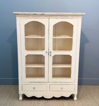 LAURA ASHLEY HOME 'BRAMLEY' DISTRESSED WIRE-FRONT ARMOIRE, with two doors over two drawers, interior with three shelves, 160 (h) x 120 (w) x 36cms (d)