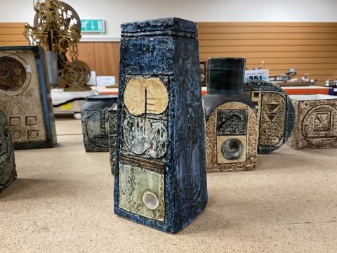 TROIKA POTTERY COFFIN VASE, signed with initials 'AB' (Alison Brigden) to base, 17.5cms (h)