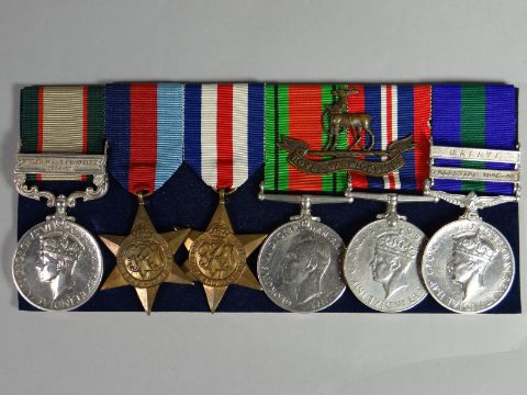 Group of six medals to Lt. Col. J.H. Faulkner, R. War. R, consisting of India General Service Medal with North West Frontier 1936-37 clasp to Lieut. J.H. Faulkner, R. War. R.; 1939-45 and France & Germany Stars, War & Defence Medals; General Service Medal with Palestine 1945-48 and Malaya clasps to Lt. Col. J.H. Faulkner, Warwicks