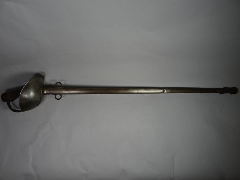 A Victorian cavalry trooper's sword with double-loop metal scabbard chequered grip and Wilkinson marked blade, 33 ins (84 cms) blade length