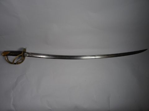 A U.S. Civil War cavalry sword with blade dated 1864 and stamped 'A.G.M. C. Roby W. Chelmsford Mass.'