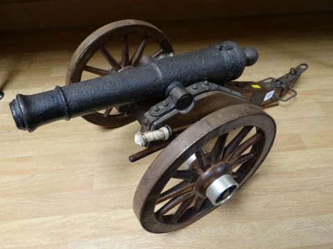 A nineteenth century British signal cannon mounted on a modern oak carriage, (45 cms) in length