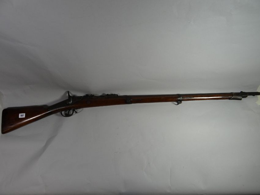 Albini-Brandlin 11mm service rifle as adopted by the Belgian military and Gendarmerie in 1867, well-rifled barrel (34 ins), ladder sights, fully-stocked with three barrel bands