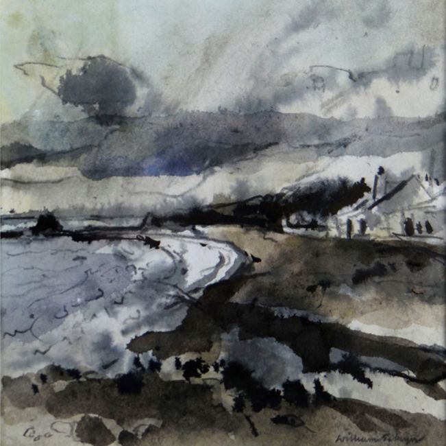 WILLIAM SELWYN watercolour - coastal village, entitled verso 'Aberdesach' on Tegfryn Gallery label, signed, 5 x 5 ins (13 x 13 cms)