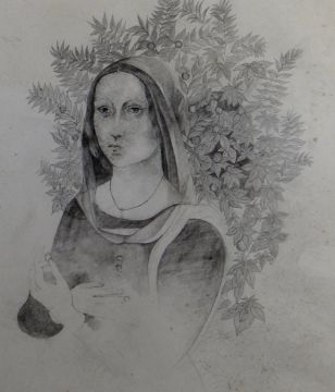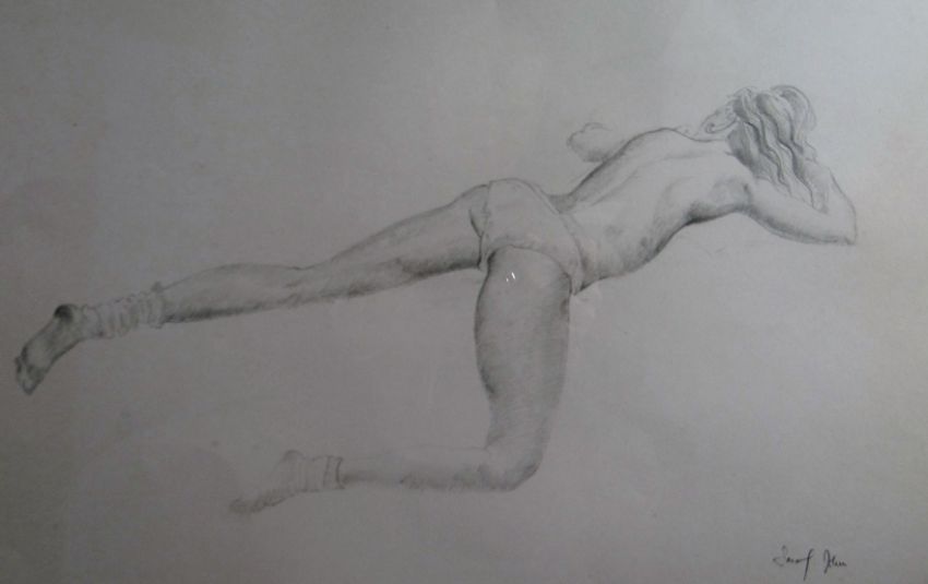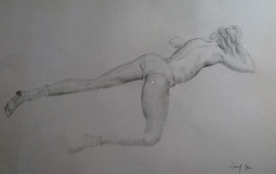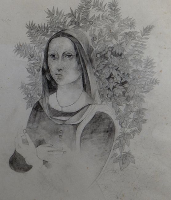 SARA JOHN pencil drawings a pair - 1) nude lying down,13 x 19.5 ins (33 x 50 cms), signed, 2) female with foliage to back of head, entitled verso 'Lady with Ring', signed, 15 x 12 ins (38 x 30 cms)