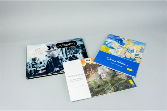 'Claudia Williams' by Robert Meyrick, soft cover, National Library of Wales 2000, 'Brogarwch, Paintings of Wales' by Malcolm Edwards, soft cover and 'Aneurin', the artist Aneurin Jones, second edition 2003, dustcover