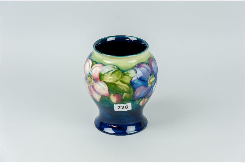 A Moorcroft waisted form vase, 6.5 x 6 ins (16.5 x 10.5 cms), (some glaze crackle and bubble imperfection to glaze finish)
