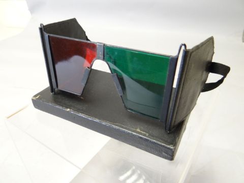 Opticians red and green glass testing glasses