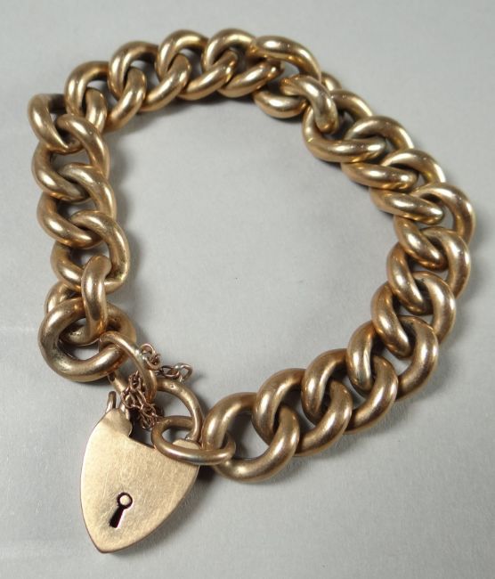A 9ct yellow gold link bracelet with heart-shaped padlock, 26.11 gms