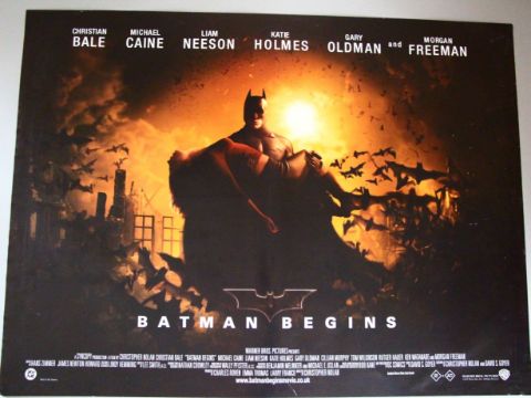 "Batman Begins" 2005 Batman holding girl style rolled double-sided DC comics British Quad film poster. (condition A)