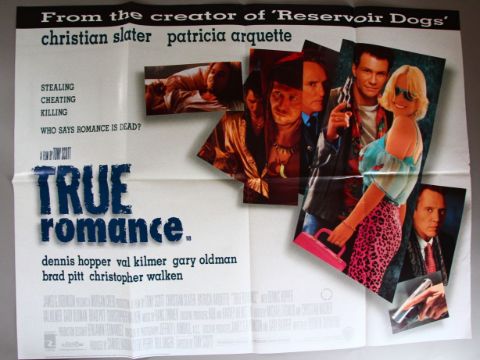 "True Romance" starring Dennis Hopper, Christian Slater, Patricia Arquette, Val Kilmer, Gary Oldman, Brad Pitt, Christopher Walken British Quad original film poster. (condition A)