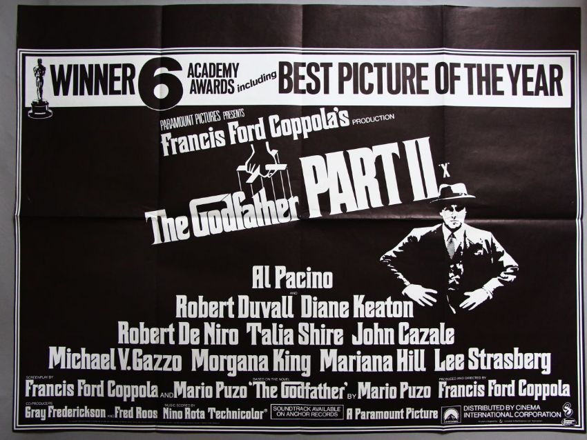 "The Godfather Part II" 'X' certificate Original British Quad film poster directed by Francis Ford Coppola starring Al Pacino, Robert De Niro, Diane Keaton and Robert Duvall. Printed by Lonsdale & Bartholomew. (condition A)