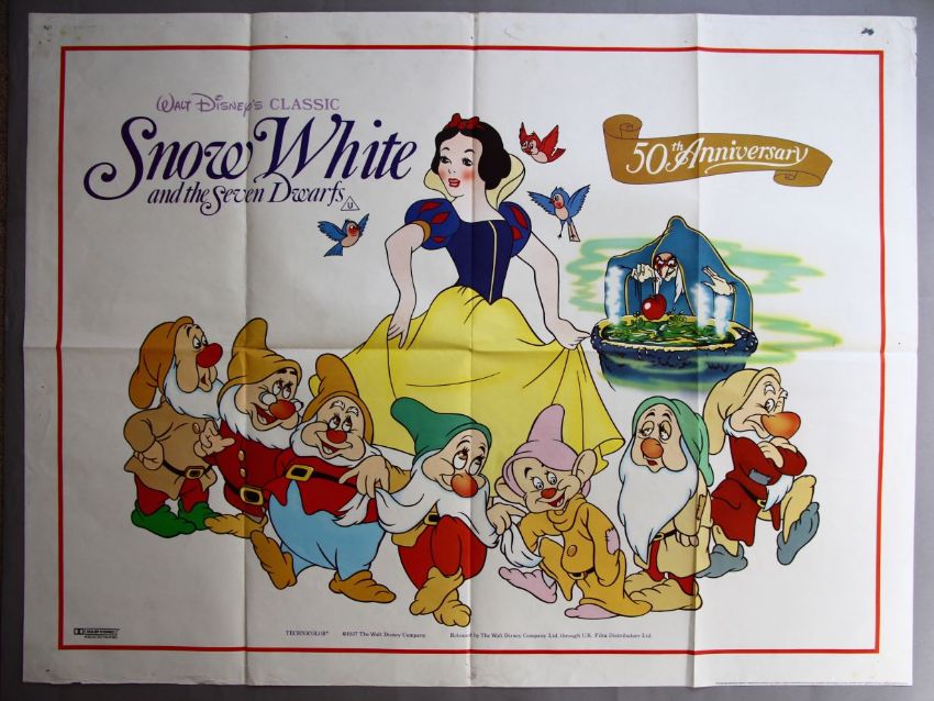A collection of five Disney British Quads including "Snow White and the seven dwarfs" plus "Lady and the Tramp", Peter Pan, The Little Mermaid and Oliver & Co. (5) (condition A)
