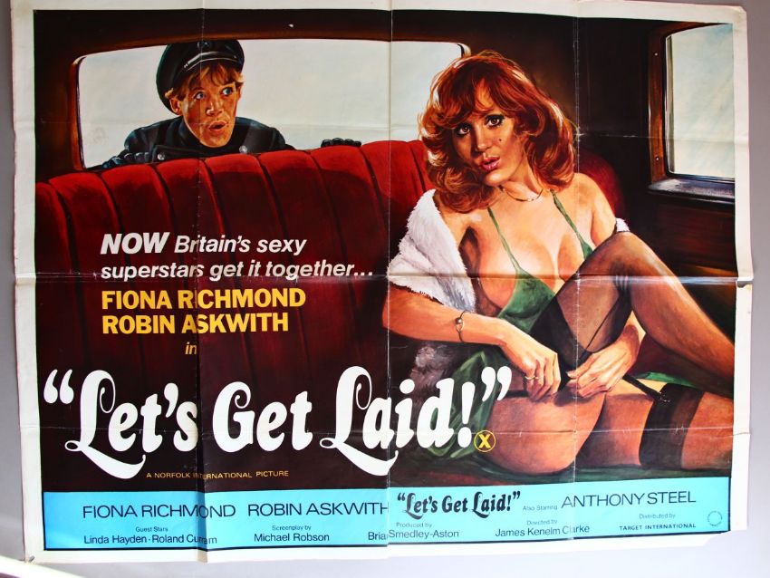"Let's Get Laid" "X" certificate British Quad film poster with artwork by Tom Chantrell starring Fiona Richmond and Robin Askwith (condition A)