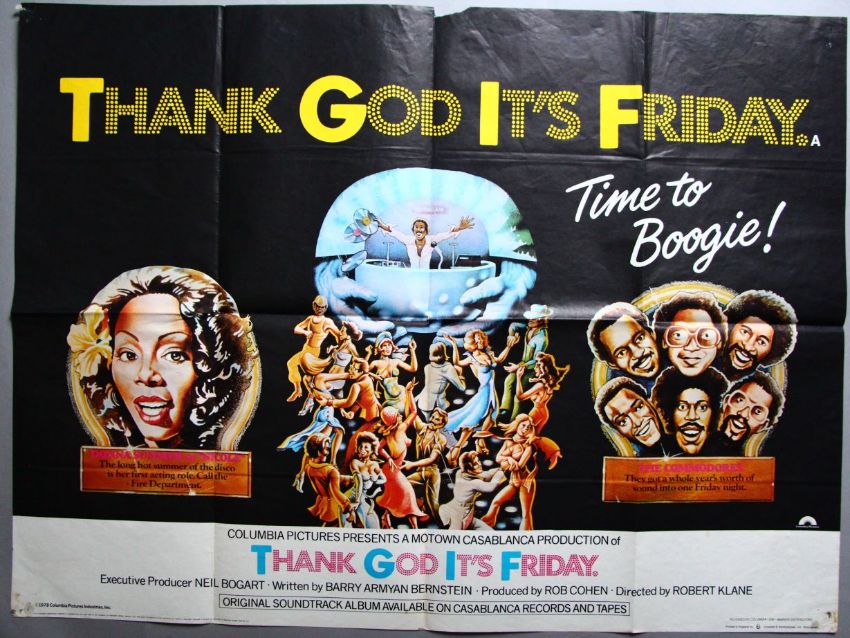 Ten British Quad film posters to include "Thank God It's Friday", Hair, Streets of Fire, Evita, Rain Man, Zandalee, Cider House Rules, Dance with a Stranger etc