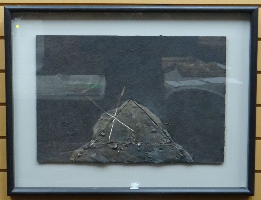 MIXED MEDIA AND CONSTRUCTION: Ross Loveday - titled verso '...The Shape of a Chinese Hat', unsigned, 15 x 22 ins (38 x 55 cms) MOUNTED AND FRAMED