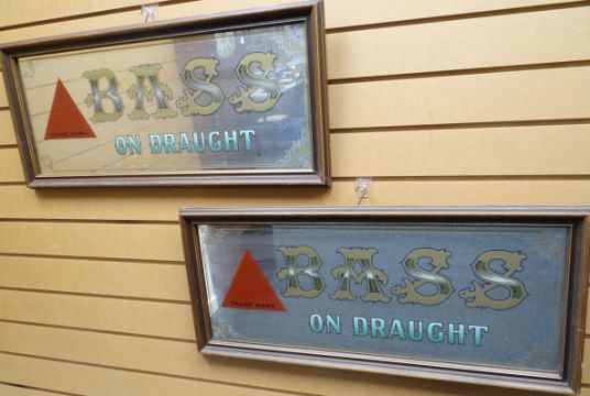 A pair of Bass 'On Draught' bar advertising mirrors, 32 x 14 ins (81 x 36 cms) including frames