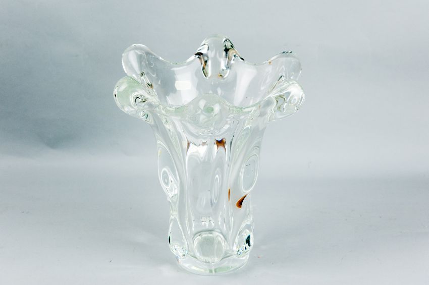A heavy wide necked glass vase of globular form, marked 'Vannes Art France', 11 ins (29 cms) high