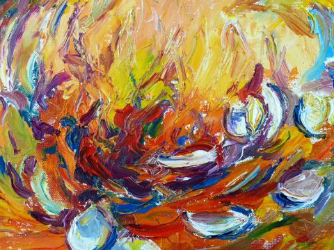JUNE COLEMAN oil - multi-coloured abstract, signed and entitled verso ‘Regeneration 2’, 8 x 13.75 ins (20 x 35 cms)