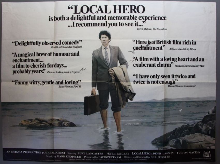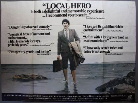 Twenty folded Quads inc. Local Hero (1983) Burt Lancaster review style Original British Quad (30 x 40 inch) Condition A plus Chariots of Fire, Capone, Gregory's Girl, Goonies, Young Sherlock etc