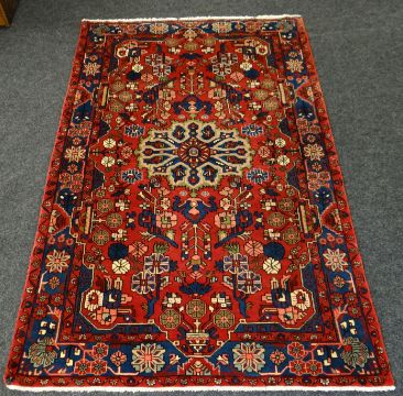 An Iranian Nahavand wool-pile patterned carpet with rust coloured reserve, 96 x 61 ins (244 x 155 cms)