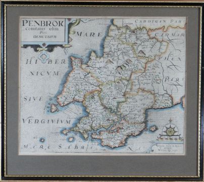 OWEN & KIP antique coloured map of 'Penbrok', 11.25 x 13.5 ins (28 x 34.5 cms)