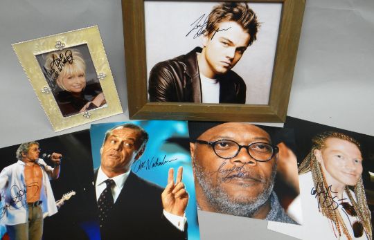 A parcel of entertainment celebrity autographs, mainly photographs, including Roger Daltrey, George Martin, Leonardo di Caprio, Samuel L Jackson etc