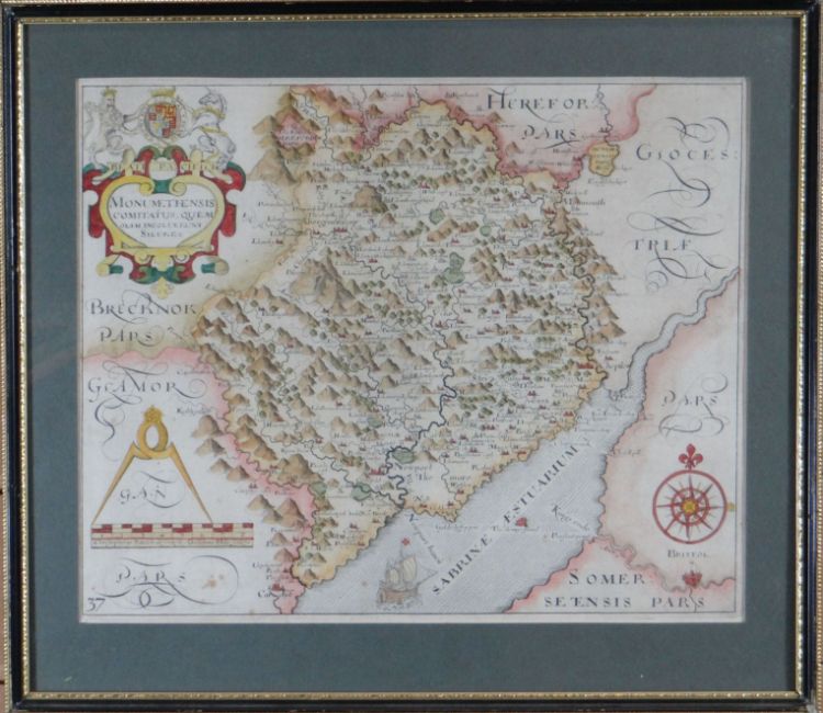 SAXTON & HOLE antique coloured map of 'Monumethensis', 11 x 13.5 ins (28 x 34.5 cms)