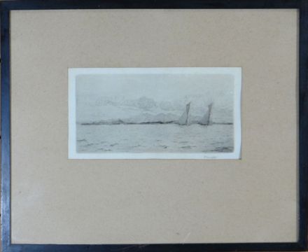 FRANK H MASON etching entitled 'Scarborough', 5.5 x 7.5 ins (14 x 19 cms) and another maritime etching, indistinctly signed