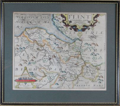SAXTON & KIP antique coloured map of 'Flint', 10.5 x 12.75 ins (27 x 32 cms)