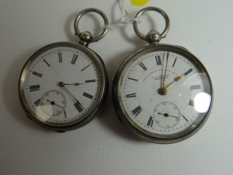 Two gent's silver antique pocket watches, both with guilloche cases and white enamel dials bearing Roman numerals, one inscribed 'THE EXPRESS ENGLISH LEVER - J G GRATES, SHEFFIELD'