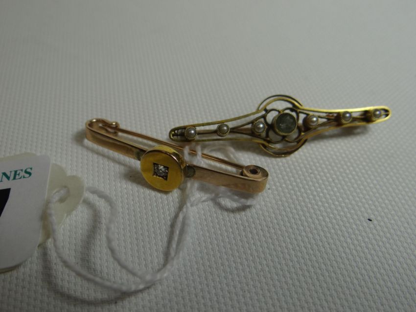 Two yellow gold bar brooches, 15ct and 9ct, total weight 5.2gms