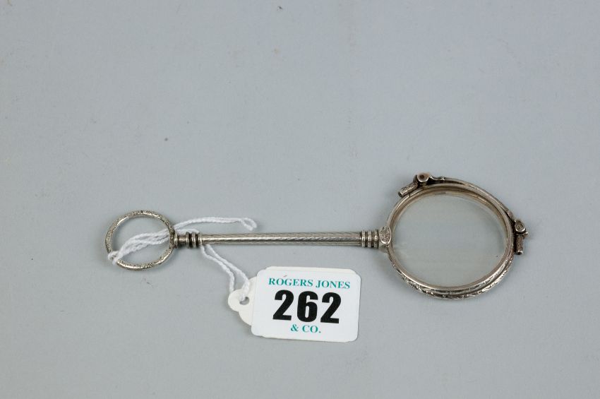 Lorgnettes - a pair of silver lorgnettes with slender handle and ring top, import marks for Birmingham 1912