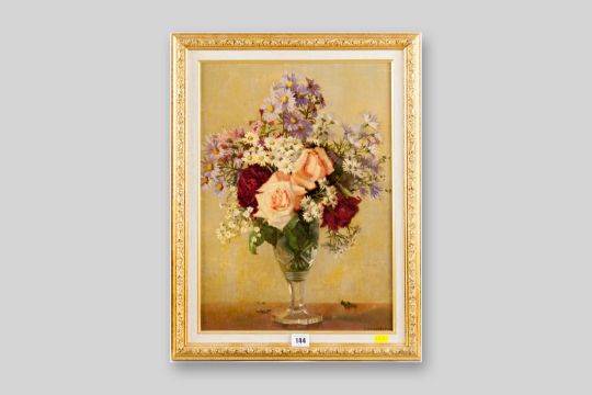 J ERNEST FOSTER oil on board - still life, flowers in a vase, signed, 18.75 x 13.25 ins (48 x 34 cms)