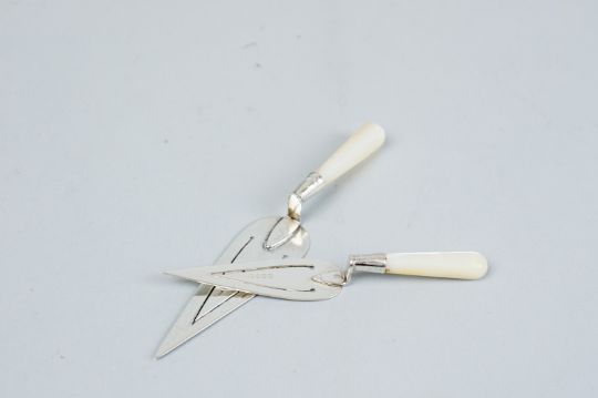 Bookmarkers - two mother of pearl handled silver trowel bookmarks, Birmingham 1914 and Glasgow 1930