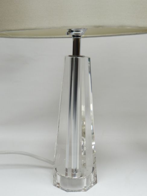 A pair of contemporary clear glass table lamps with shades, 6.75ins high incl. shade (17cms)