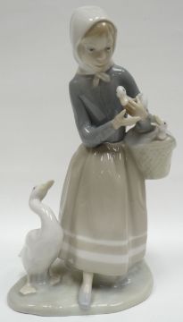 A Lladro figure of a girl with goslings and goose, 9.5ins high (24cms)