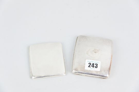 A gentleman's plain silver cigarette case, 2.5 ozs, Birmingham 1919 and an engine turned silver cigarette case (worn), 3.7 ozs, Birmingham 1923