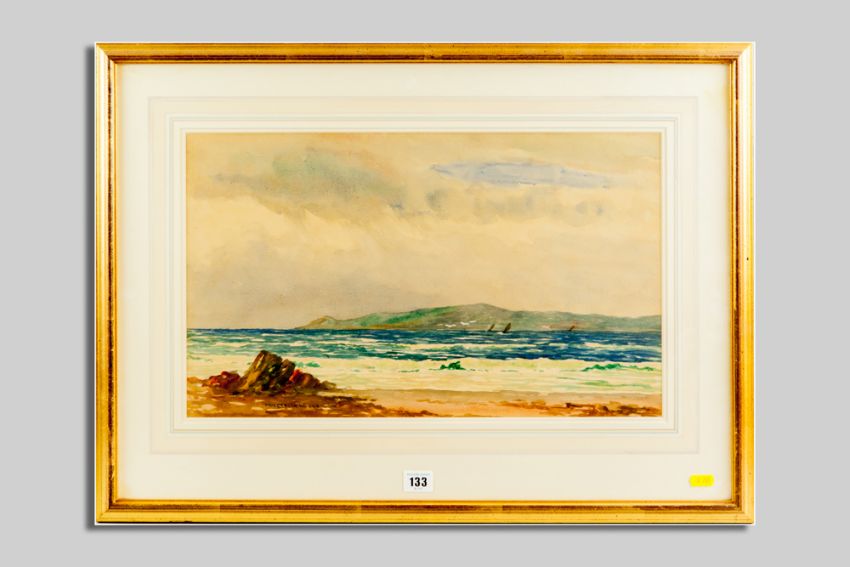 P MACGREGOR WILSON watercolour - coastal scene with distant yachts, signed, 29 x 49 cms