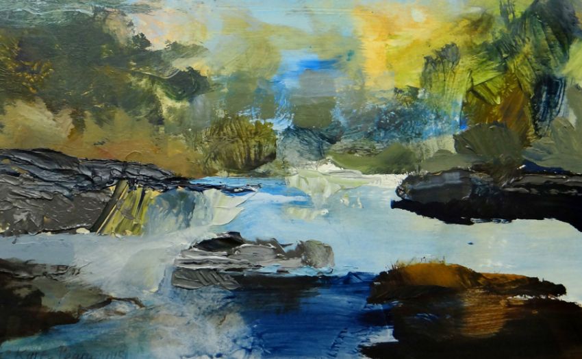 KAREN PEARCE oil on board - the Rheidol Valley, near Aberystwyth, signed and dated 2015, 8.5 x 13.5 ins (22 x 34 cms)