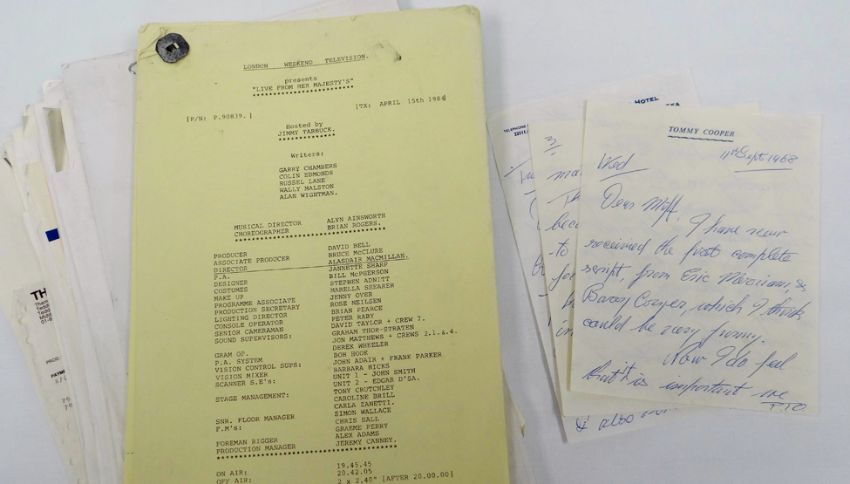THOMAS FREDERICK 'TOMMY' COOPER 1921-1984 A parcel of Tommy Cooper related memorabilia and artwork to be offered on behalf of The Tommy Cooper Society to raise further funds for 'Tommy's Ticker Campaign', a campaign to purchase defibrillators for public use in locations of public assembly. Born in Caerphilly, Tommy Cooper became one of the world's most recognisable and innovative comedians, his television work spanning nearly 40 years after his 'big break' on the BBC talent show 'New to You'. On 15 April 1984, he collapsed from a heart attack live on London Weekend Television's 'Live From her Majesty's'. There is a statue of Tommy Cooper standing in his hometown of Caerphilly which was unveiled by Sir Anthony Hopkins, a patron of The Tommy Cooper Society'. In a 2005 poll 'The Comedian's Comedian', Tommy Cooper was voted the sixth greatest comedy act ever. 1. Oil on canvas - full standing portrait of Tommy Cooper in typical Fez wearing pose and with props 2. Oil on canvas - head and shoulders portrait of a Fez wearing Tommy Cooper 3. A signed still black and white photograph of Sir Anthony Hopkins, patron of The Tommy Cooper Society on location in the film 'Instinct' 4. Lindsey Bex (LaBex) limited edition 002/100 head portrait of Tommy Cooper 5. GRENFELL 'GREN' JONES mixed media - standing portrait cartoon of the comedian 6. JOHN CLARIDGE limited edition of 50 book of black and white photographic portraits of Tommy Cooper in various expressions together with an artist's proof black and white photograph of a cigar smoking Tommy 7. A very large collection of letters and manuscripts including signed handwritten letters from Tommy to his agent Miff Ferrie, TV contracts, a synopsis of a programme entitled 'Life with Cooper' (addressed to his agent and Barry Cryer), a signed letter from Eric Sykes relating to Tommy's legacy, various interesting letters from and to Thames Television, ABC Television, Miff Ferrie and other bodies relating to Tommy Cooper's affairs incorporating merchandising, contracts and TV appearances. 8. A working script for 'London Weekend Television presents Live from her Majesty's Theatre', dated April 15, 1984 being the final fateful Tommy Cooper appearance 9. An amusing Tommy Cooper doll