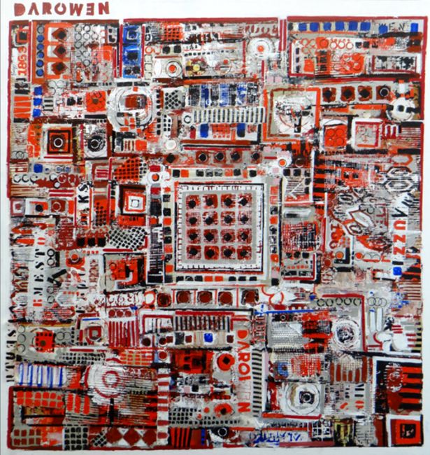 JOHN UZZELL EDWARDS mixed media on canvas - large abstract composition from the Welsh quilt series entitled 'Darowen', signed and dated verso '07, 60 x 58 ins (152 x 148 cms)