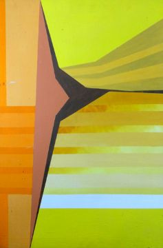 GOMER LEWIS acrylic on canvas - semi-abstract entitled verso 'Yellow and Orange Stripes, unframed, 36 x 24 ins (91 x 61 cms)