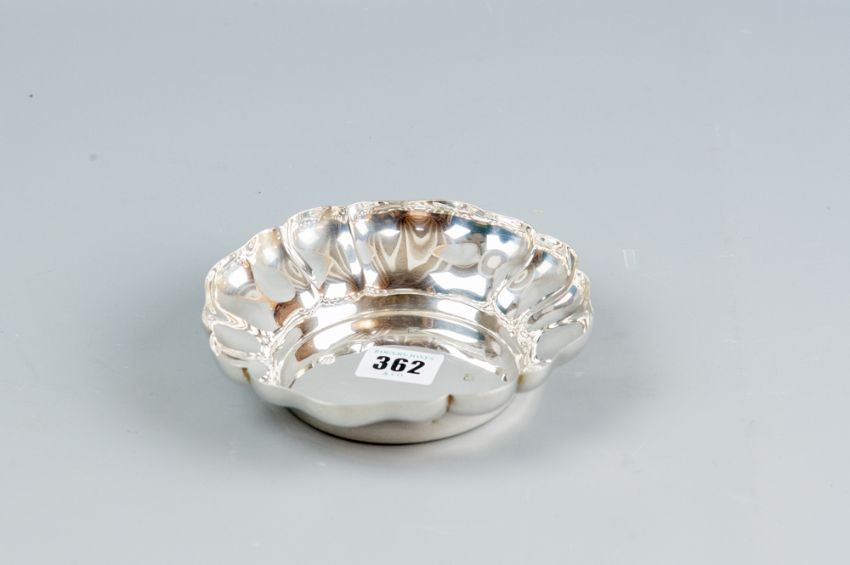 A modern silver circular dish with deep border, 5.6 ozs, Birmingham 1961