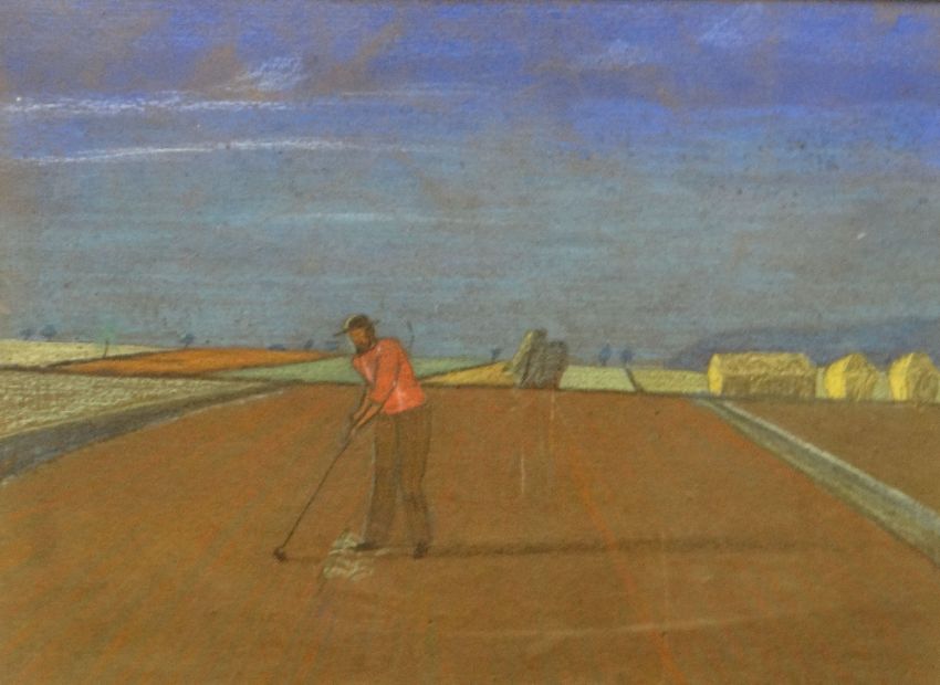 ATTRIBUTED TO JOHN NASH pastel drawing on both sides (frame glazed twice) - 1. figure working in a field, 10 x 13.25ins (25 x 34cms) and 2. Landscape at night, 11 x 8ins (28 x 20cms)