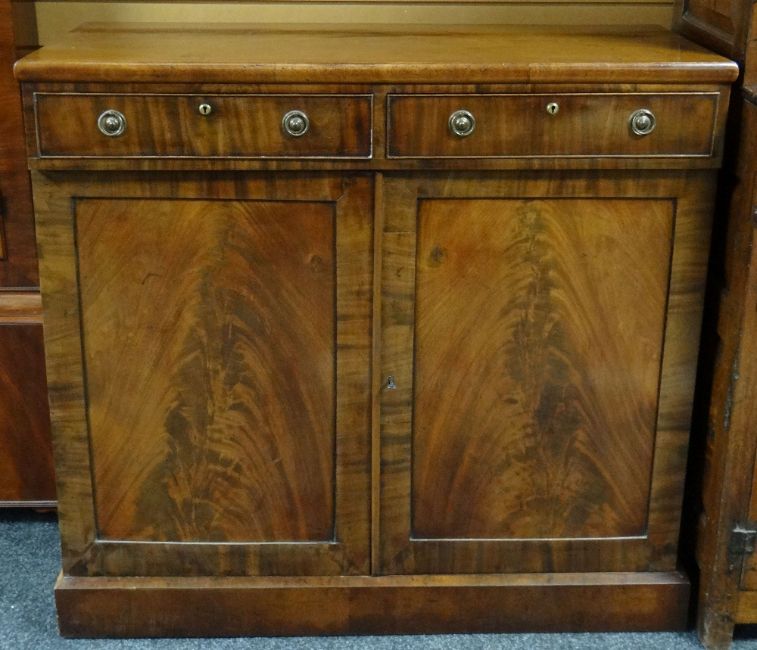 A figured mahogany cupboard base with two upper drawers, circa 1840 46.5ins wide (118cms)