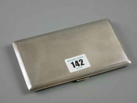 A full size oblong engine turned gentleman's silver cigarette case, 7.9 ozs, Birmingham 1951